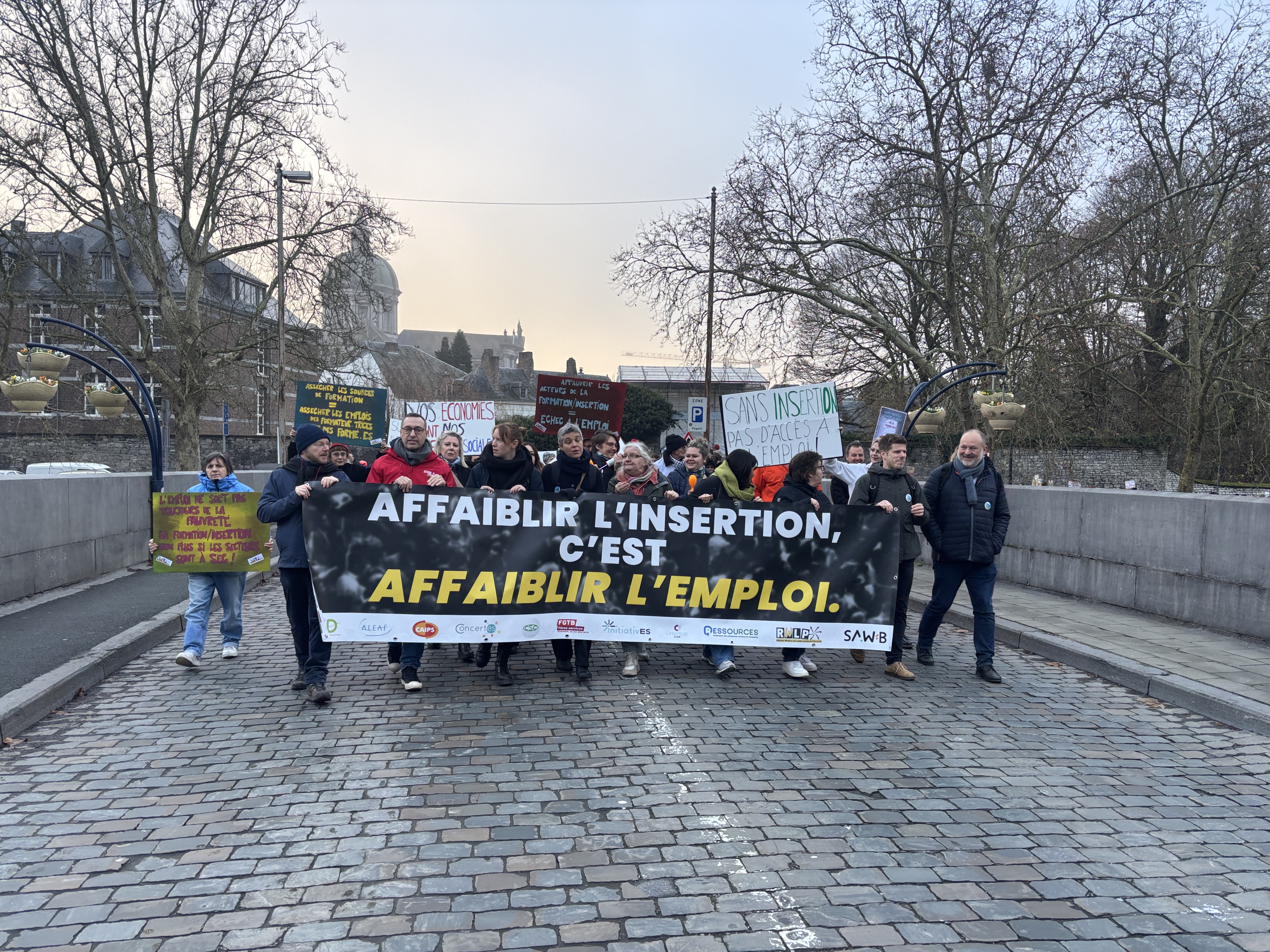 Ce 11 décembre, syndicats et patrons du secteur de l’insertion socioprofessionnelle ont manifesté dans les rues de Namur pour défendre les emplois de qualité. Tous s’opposent à une réforme totalement injuste discutée par le gouvernement wallon MR-Les Engagés qui, si elle venait à voir le jour, réduirait fortement les moyens alloués à ce secteur d’une importance vitale pour l’emploi en Wallonie. Parmi les victimes potentielles de cette réforme : les travailleuses des titres-services. En effet, cette réforme prévoit l’interdiction de l’aide SINE dans les titres-services alors que cette subvention constitue un pilier essentiel à la remise à l’emploi et au modèle économique des entreprises d’insertion.