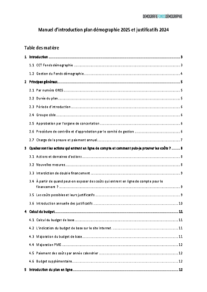 Ce guide décrit comment les plans démographie et les dossiers relatifs aux coûts peuvent être introduits. Télécharger