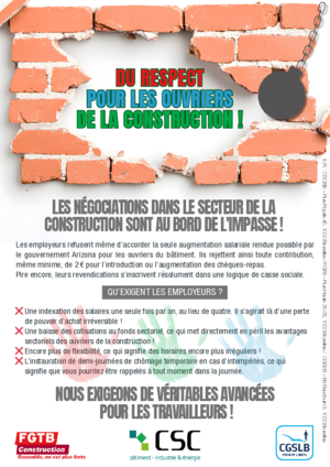 LES NÉGOCIATIONS DANS LE SECTEUR DE LA CONSTRUCTION SONT AU BORD DE L'IMPASSE !