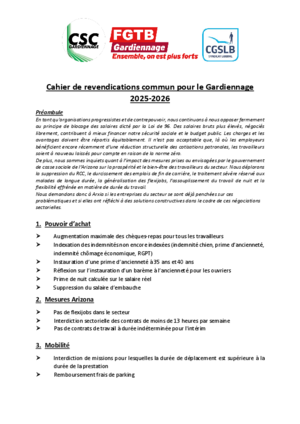 Les négociations sectorielles pour le gardiennage ont débuté. La FGTB a élaboré un cahier de revendications commun en concertation avec les autres syndicats. Ensemble, nous négocions pour améliorer le pouvoir d'achat, la mobilité, l'organisation du travail et la fin de carrière. Les mesures prises par le gouvernement Arizona ne vont clairement pas faciliter notre tâche. Ensemble, nous allons poursuivre le combat pour un secteur qui offre davantage de respect et de sécurité pour les travailleurs.