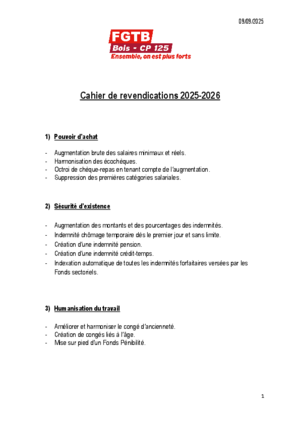 Cahier de revendications 2025-2026 FGTB Bois