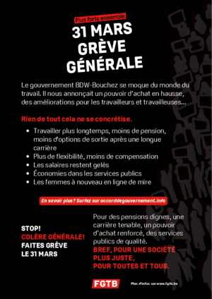 Pourquoi faire grève le 31 mars ? Parce que le gouvernement Arizona se moque du monde du travail. On nous annonçait un pouvoir d’achat en hausse, et des améliorations pour les carrières des travailleurs et travailleuses. Mais rien de tout cela ne se concrétise.
