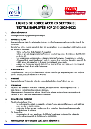 L'accord sectoriel 2021-2022 pour les employés de l'industrie textile a été signé le 24 novembre 2021. Télécharger