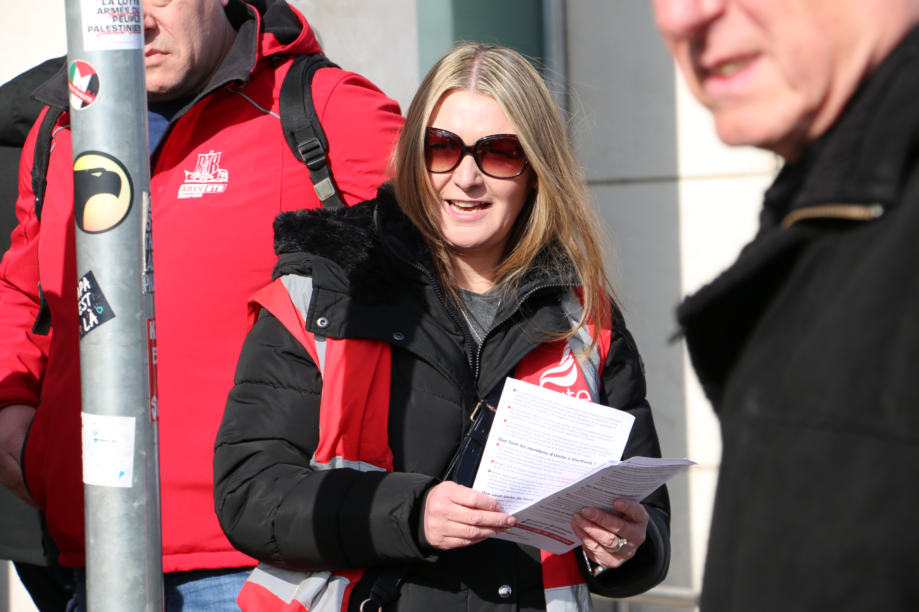 “Veolia moet begrijpen dat Unite zich niet zal beperken tot de activiteiten in Sheffield. We zullen hen in het hele Verenigd Koninkrijk te kijk zetten. We zullen hun zetel in Parijs en hun kantoren in Europa te kijk zetten. En we zullen hun aandeelhouders te kijk zetten tot ze de eisen van onze leden aanvaarden en Unite erkennen. Onze leden staken om die reden onafgebroken sinds de zomer en hun moreel en vastberadenheid zijn voorbeeldig. Ze genieten de volledige steun van onze vakbond en we zullen alle beschikbare middelen gebruiken om hun strijd te steunen”, zegt Sharon Graham, algemeen secretaris van Unite.
