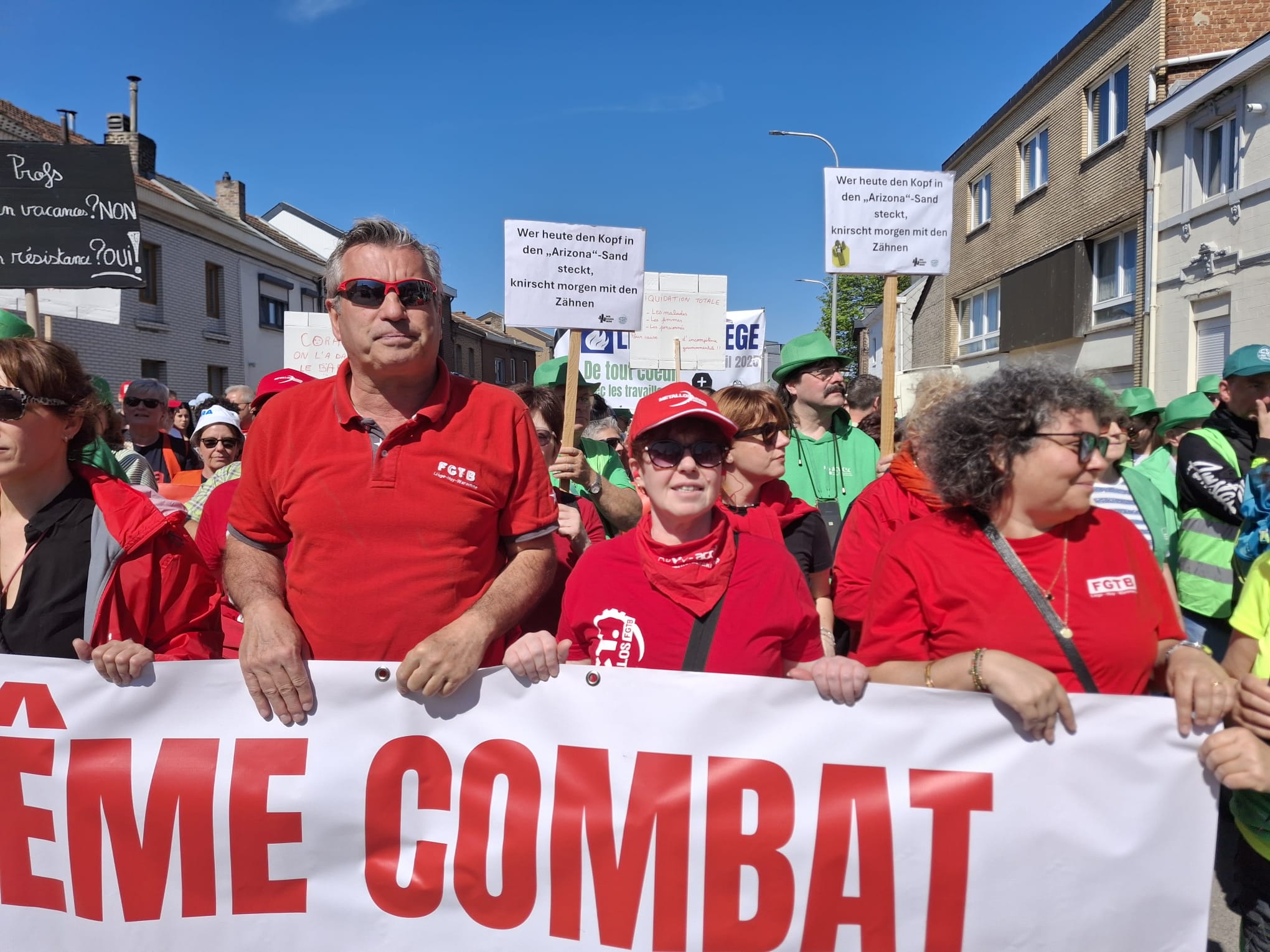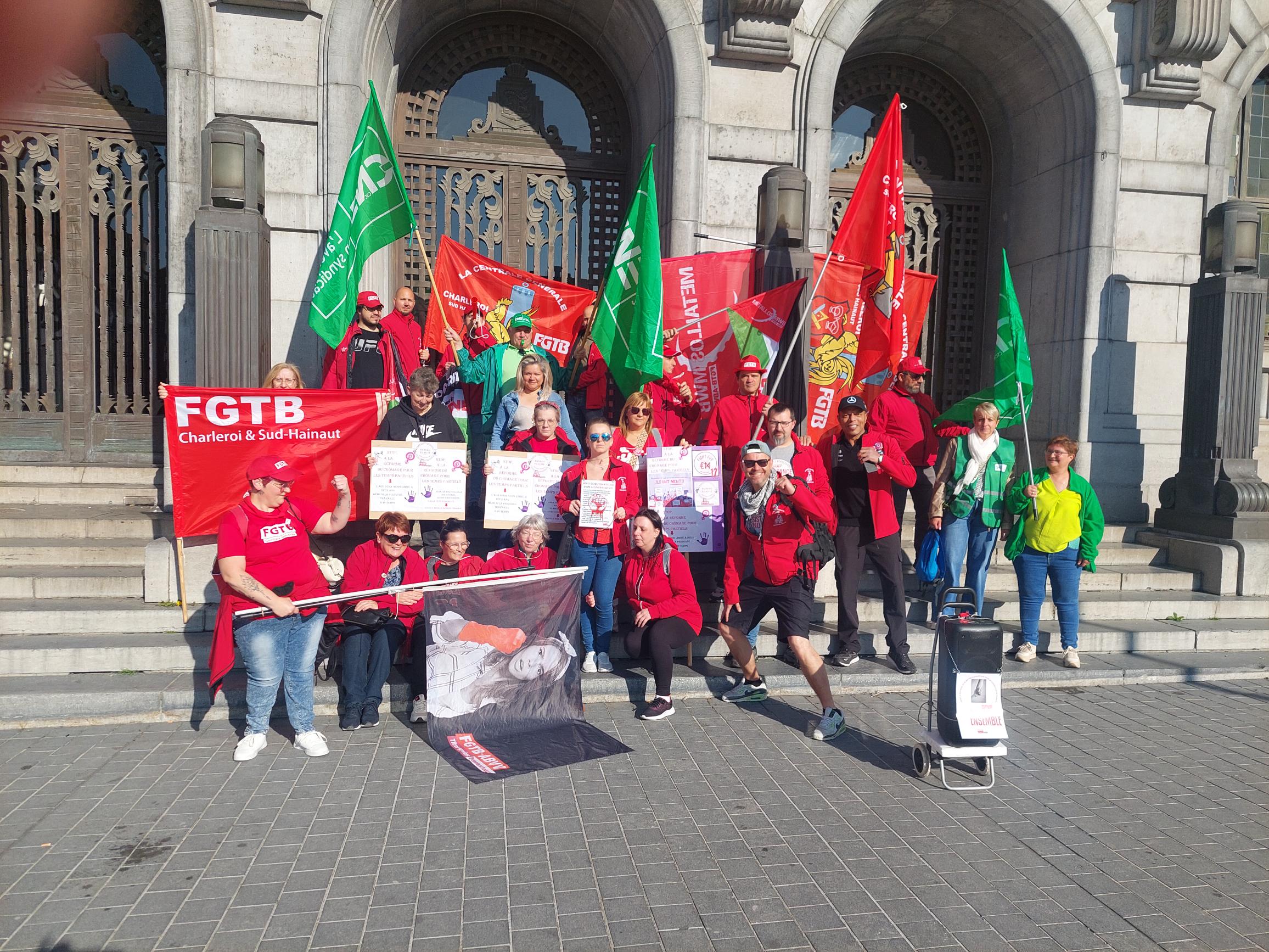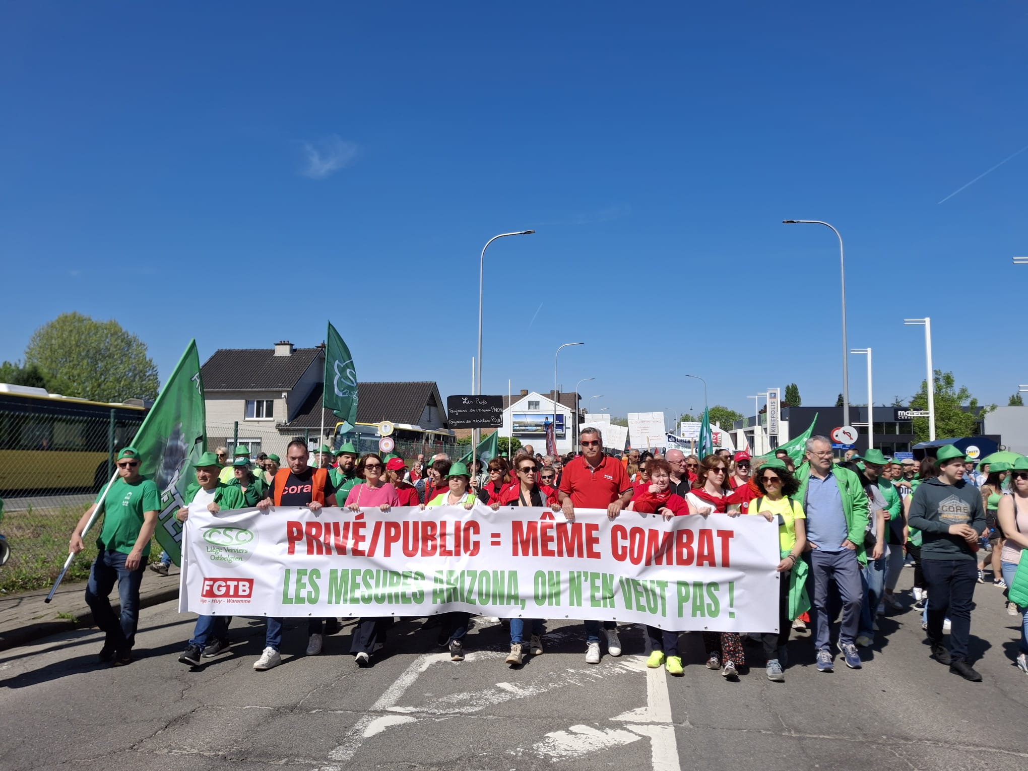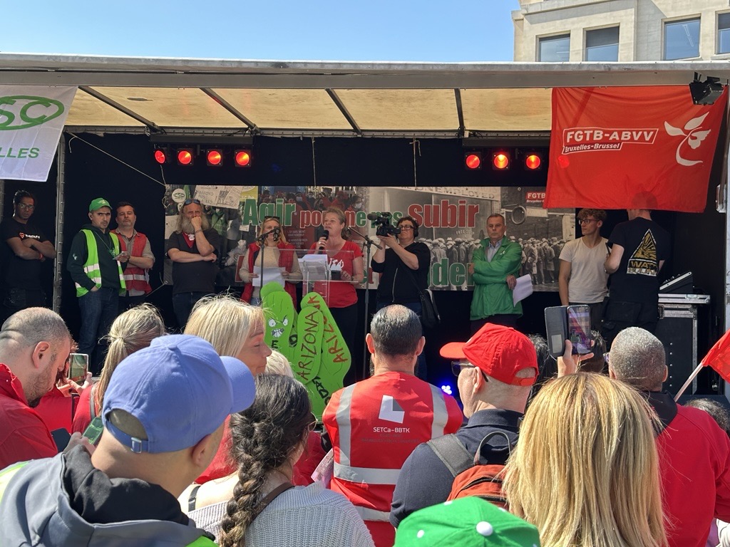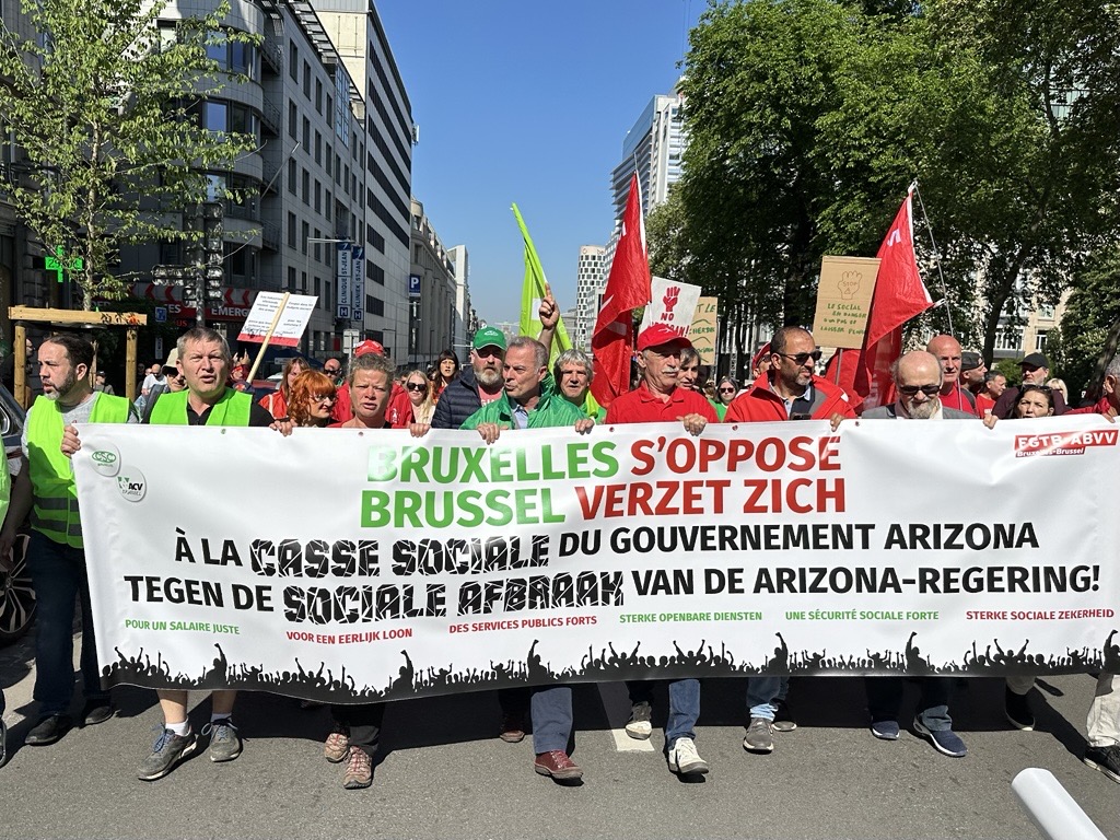 Na de succesvolle algemene staking eind maart zetten we onze acties voort vandaag/29 april. Er werden flyers uitgedeeld, piketten gehouden voor bedrijven, manifestaties georganiseerd… duizenden militanten mobiliseerden om een duidelijke boodschap te sturen naar de Arizona-regering: “NEEN aan de sociale afbraak!”