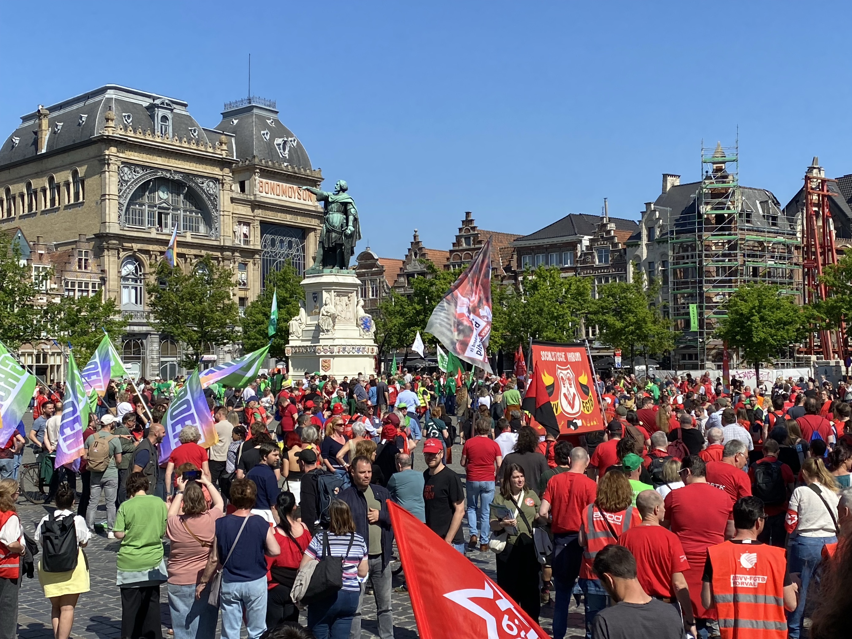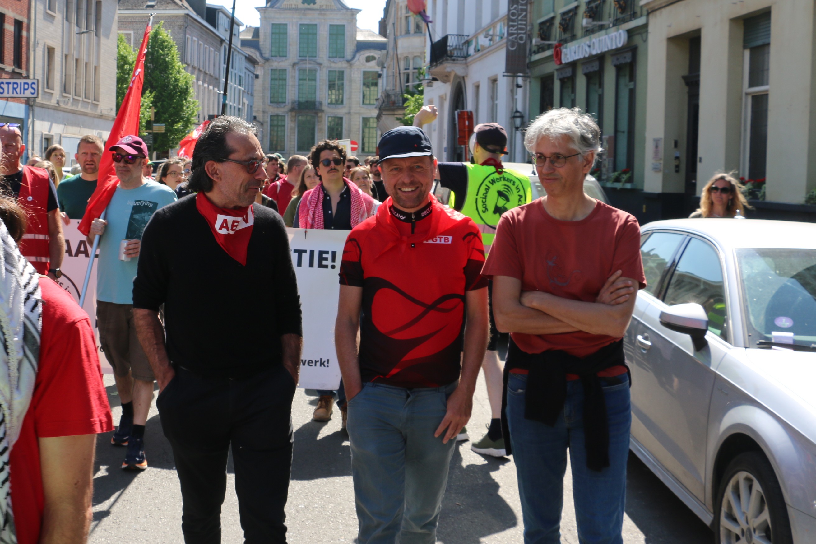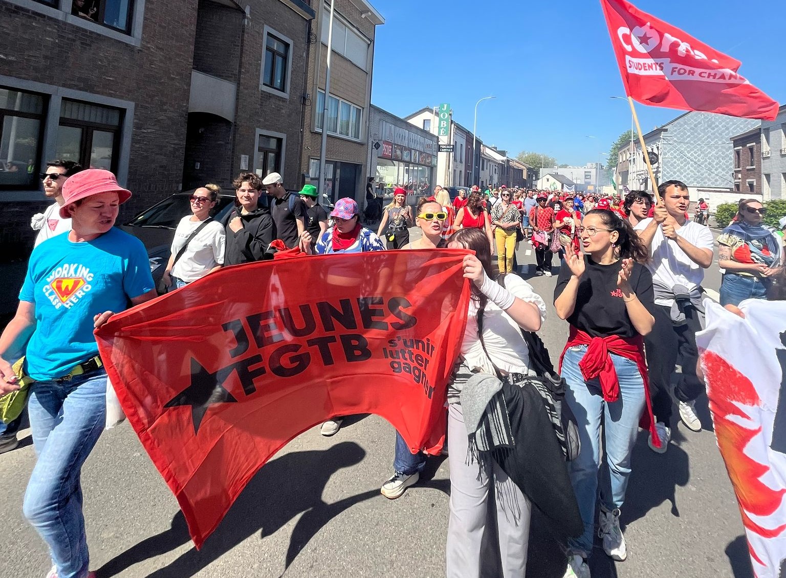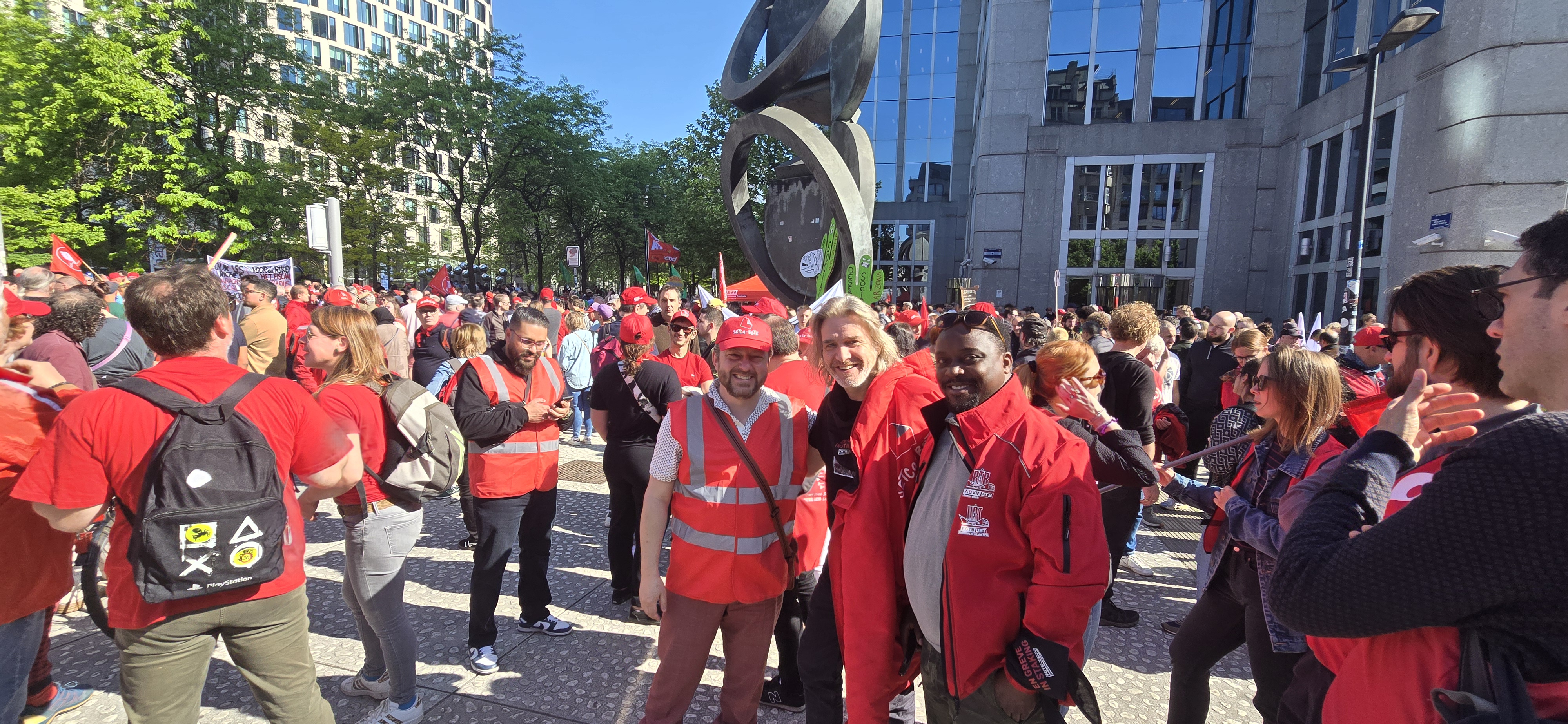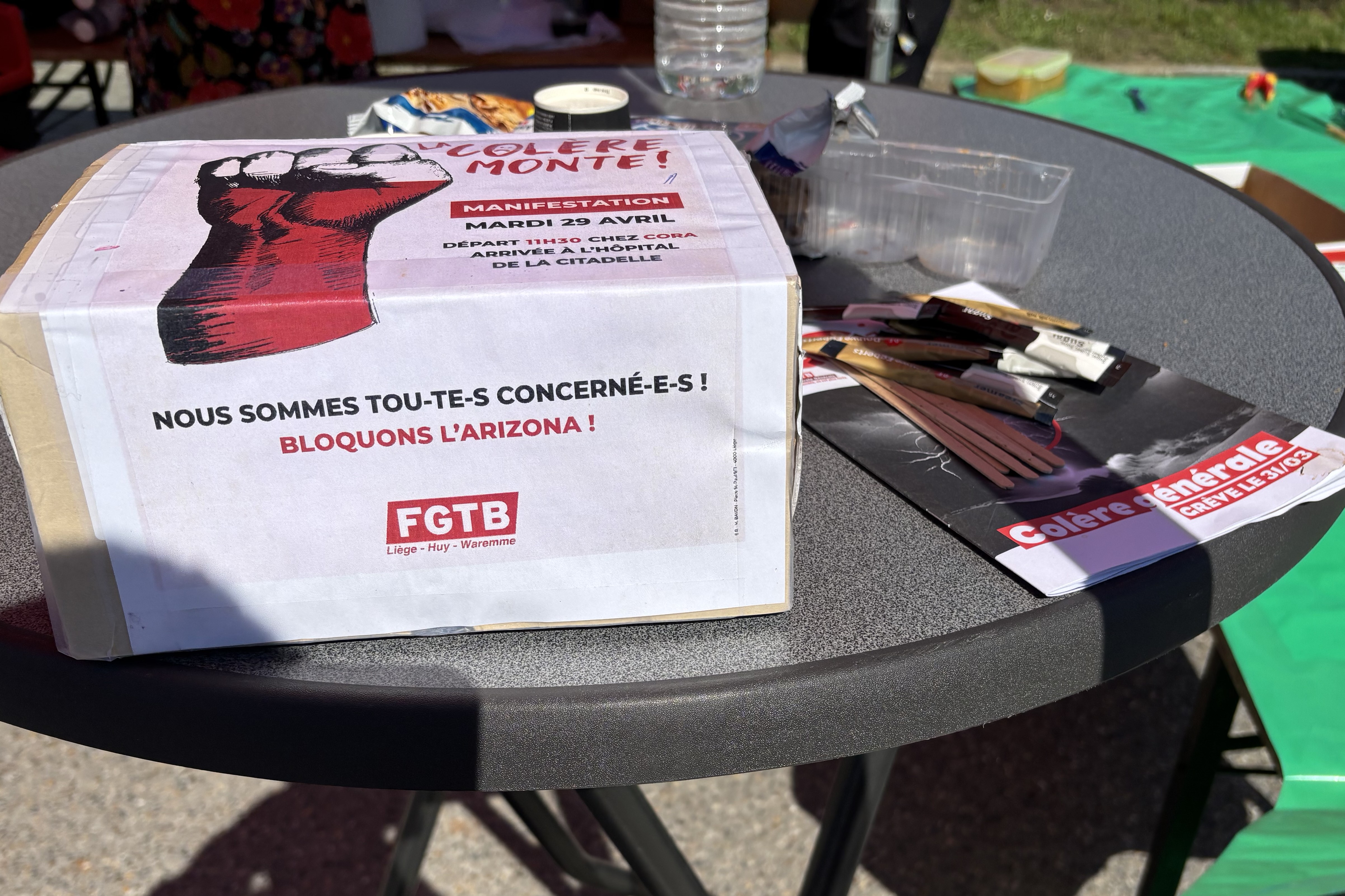 Na de succesvolle algemene staking eind maart zetten we onze acties voort vandaag/29 april. Er werden flyers uitgedeeld, piketten gehouden voor bedrijven, manifestaties georganiseerd… duizenden militanten mobiliseerden om een duidelijke boodschap te sturen naar de Arizona-regering: “NEEN aan de sociale afbraak!”