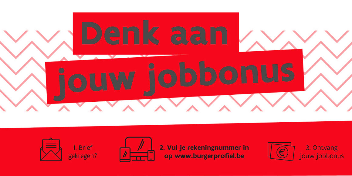 Er worden valse sms’jes verzonden over de jobbonus. Antwoord daar niet op en klik niet op de link. De Vlaamse overheid zal je enkel op papier of via e-box vragen je rekeningnummer te registreren, nooit via sms, Whatsapp of e-mail!