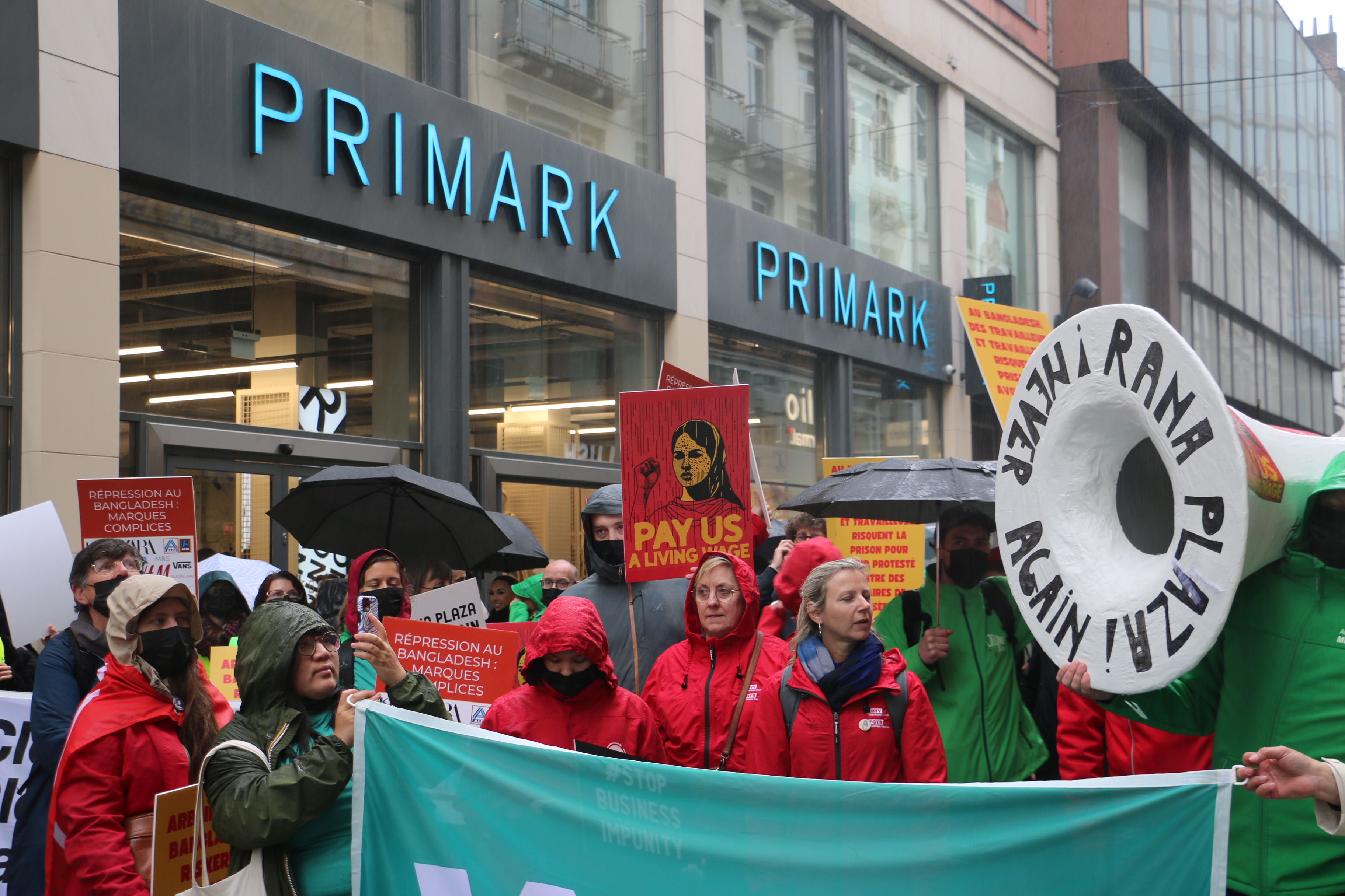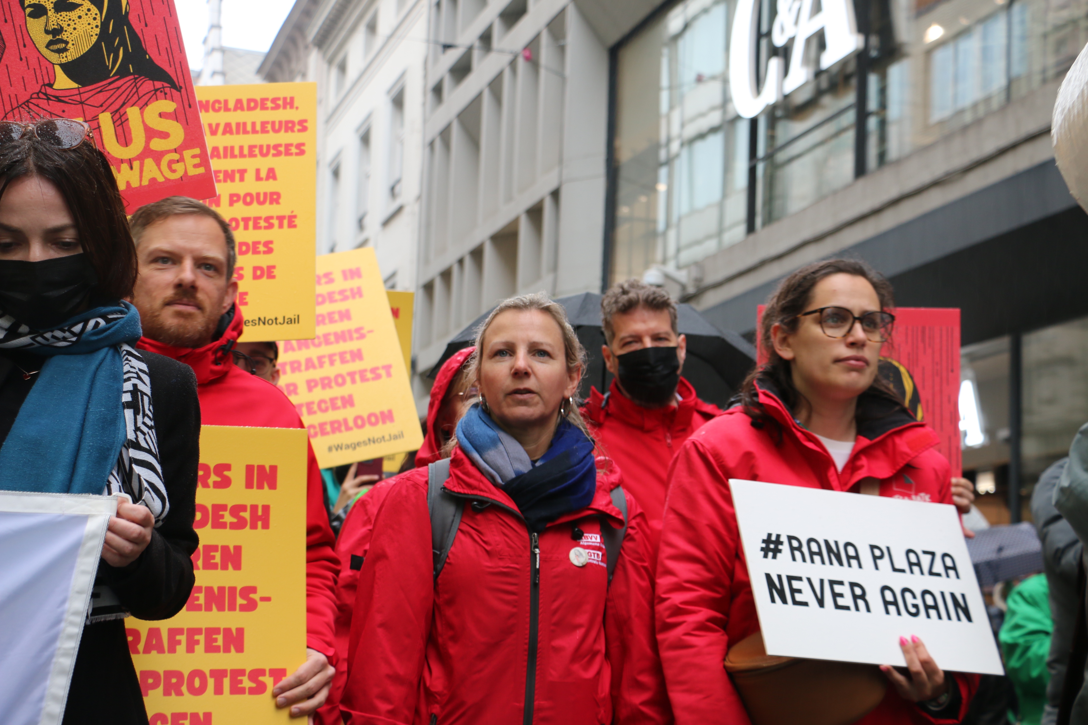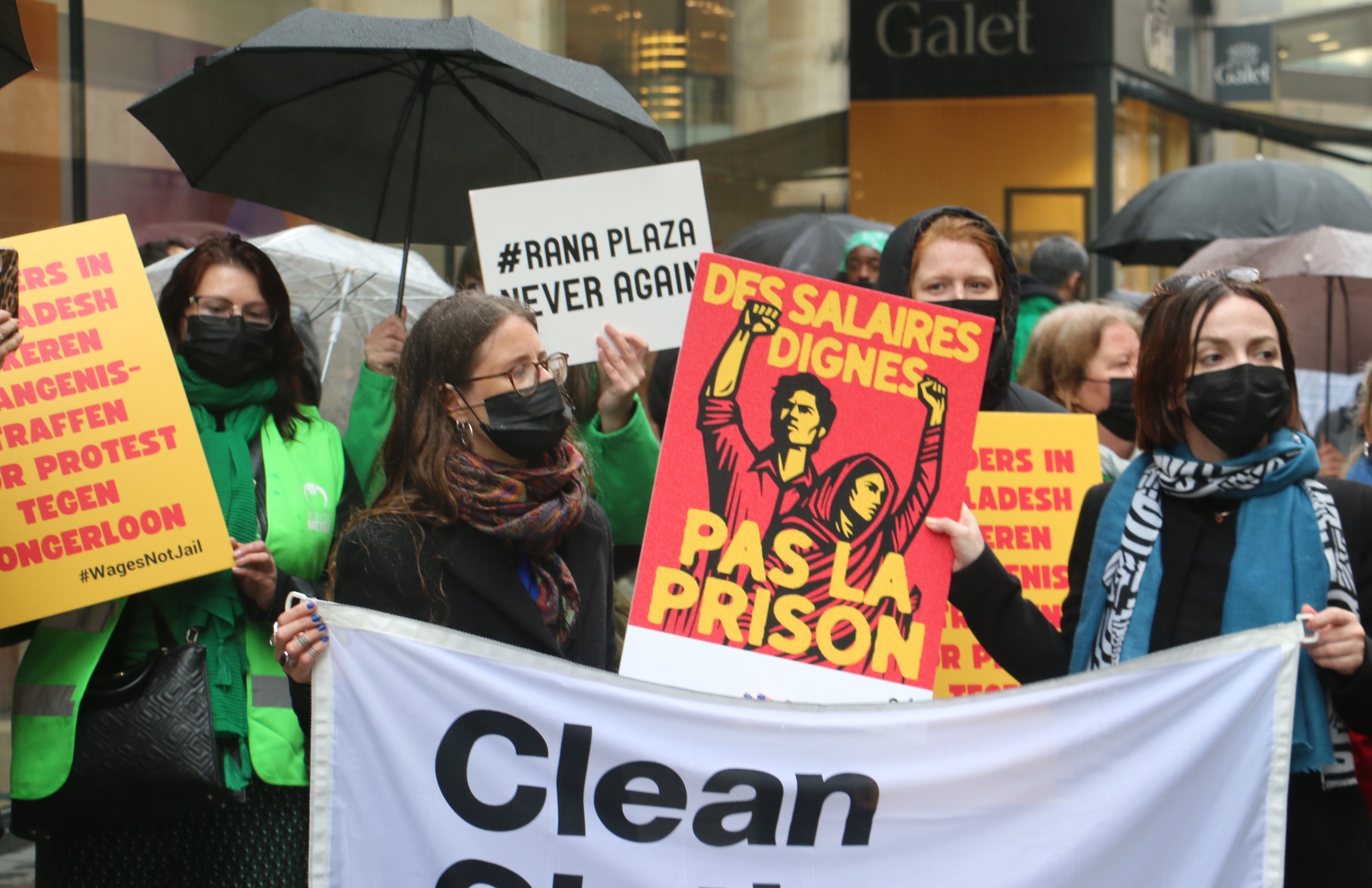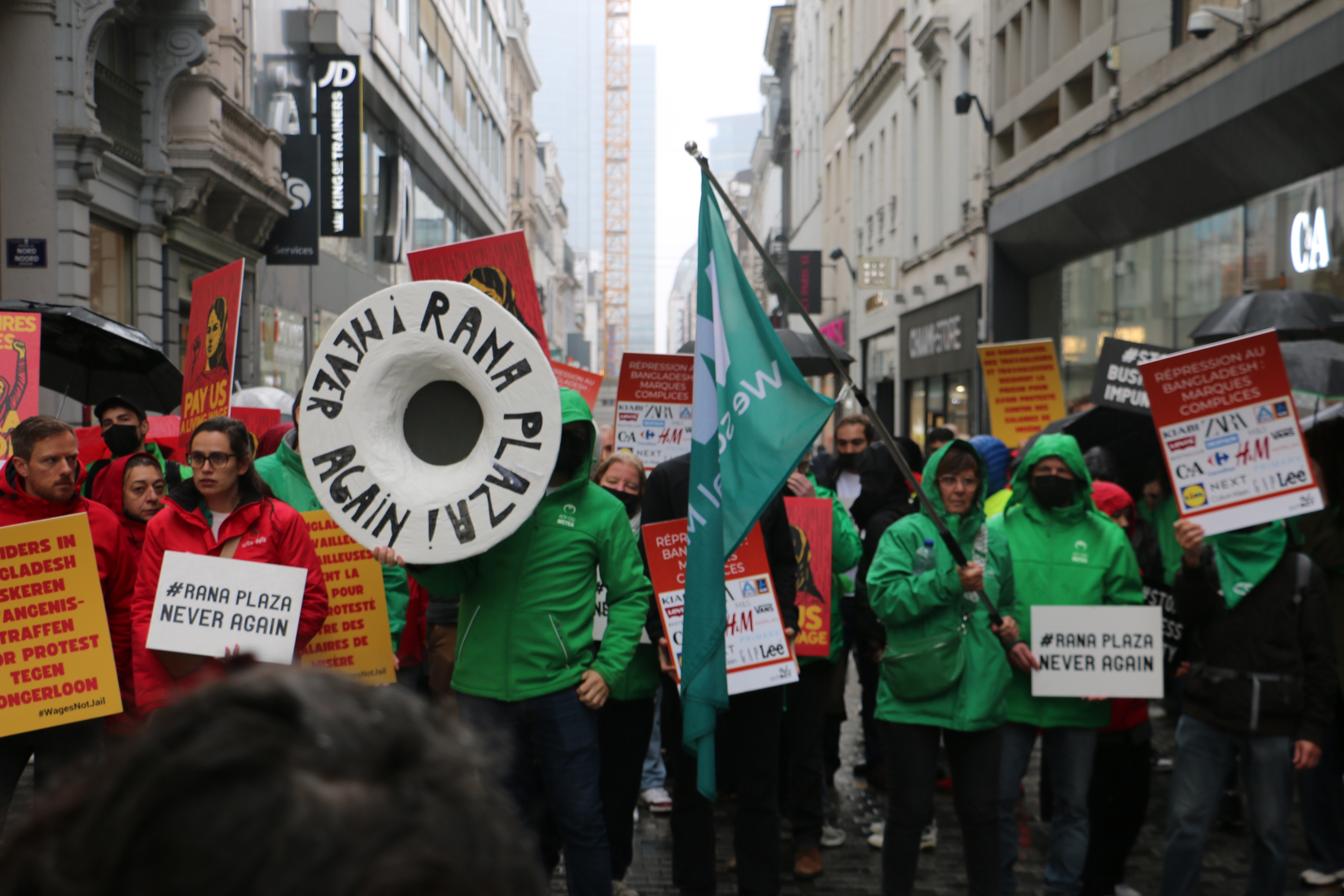 Slow motion betoging langs kledingwinkels in Brussel - 12 jaar na instorting kledingfabriek Rana Plaza