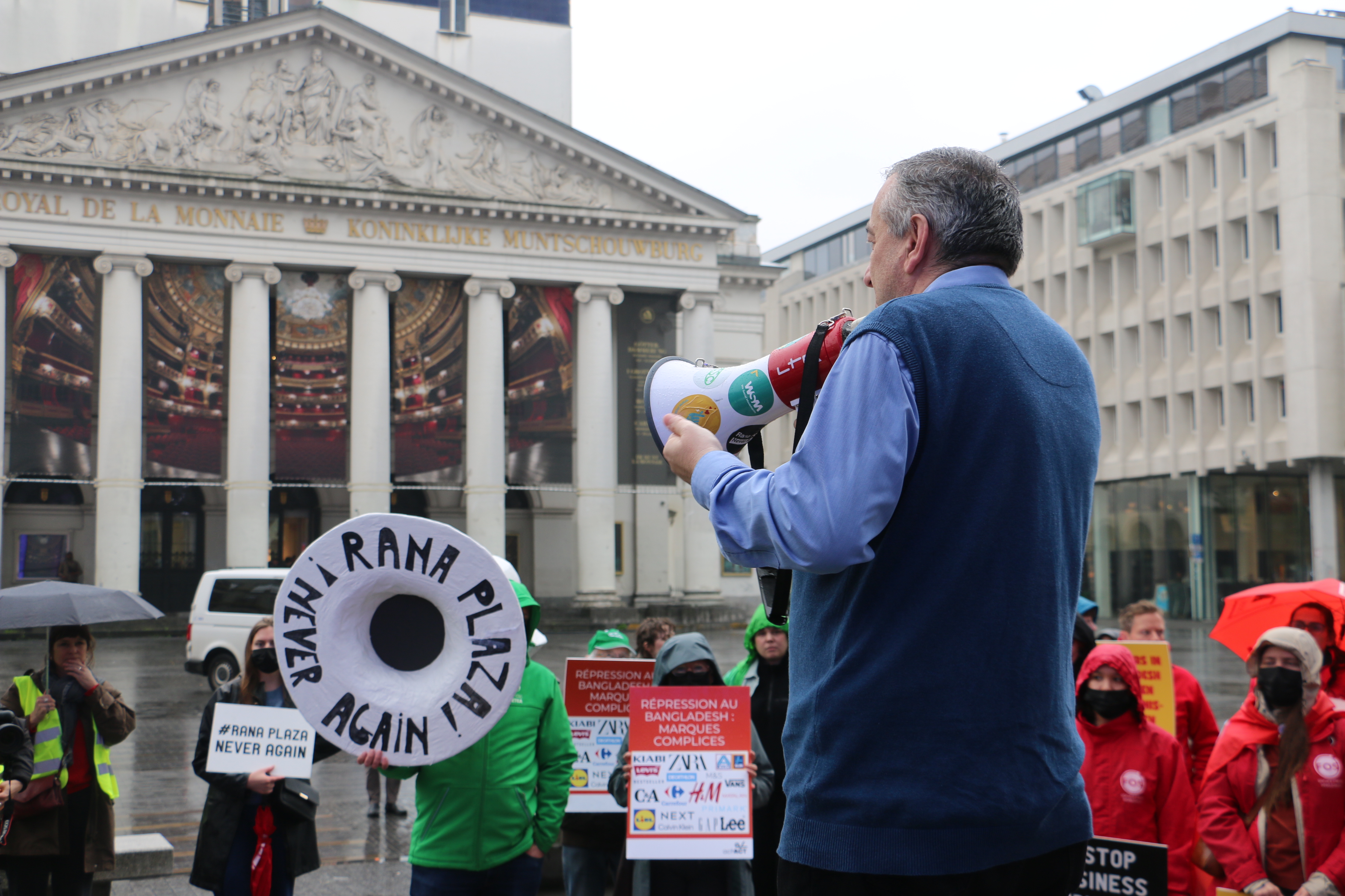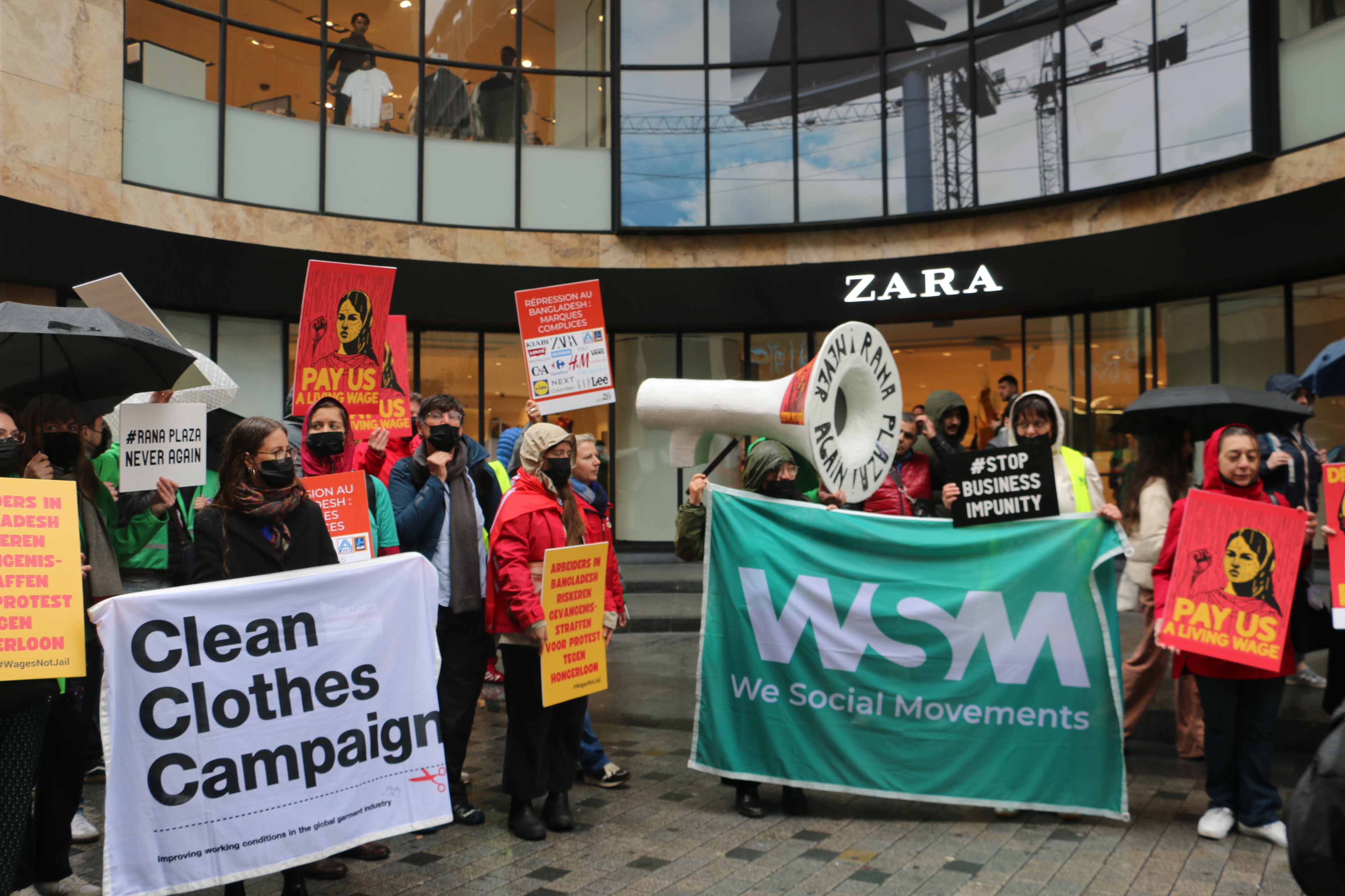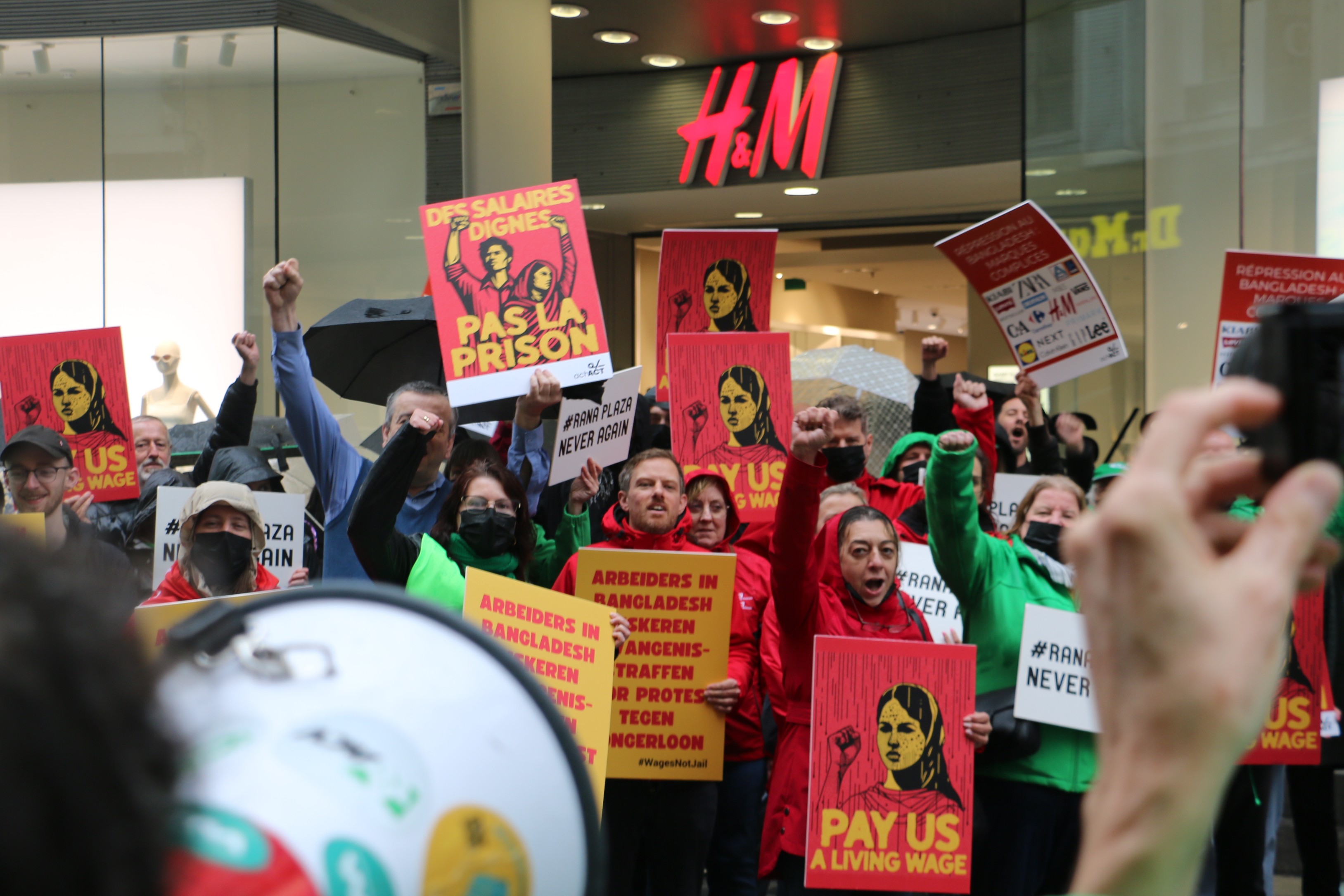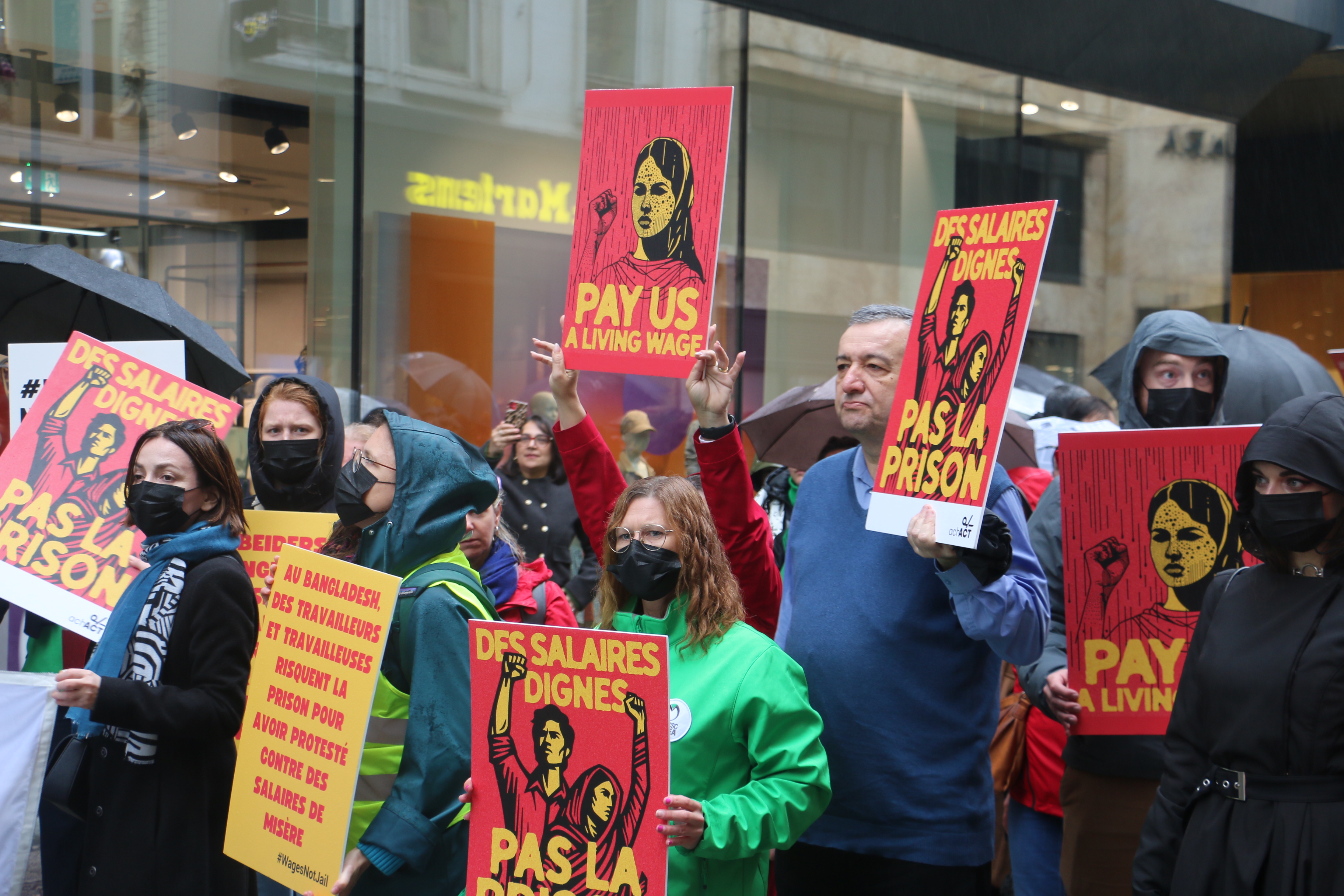 Slow motion betoging langs kledingwinkels in Brussel - 12 jaar na instorting kledingfabriek Rana Plaza