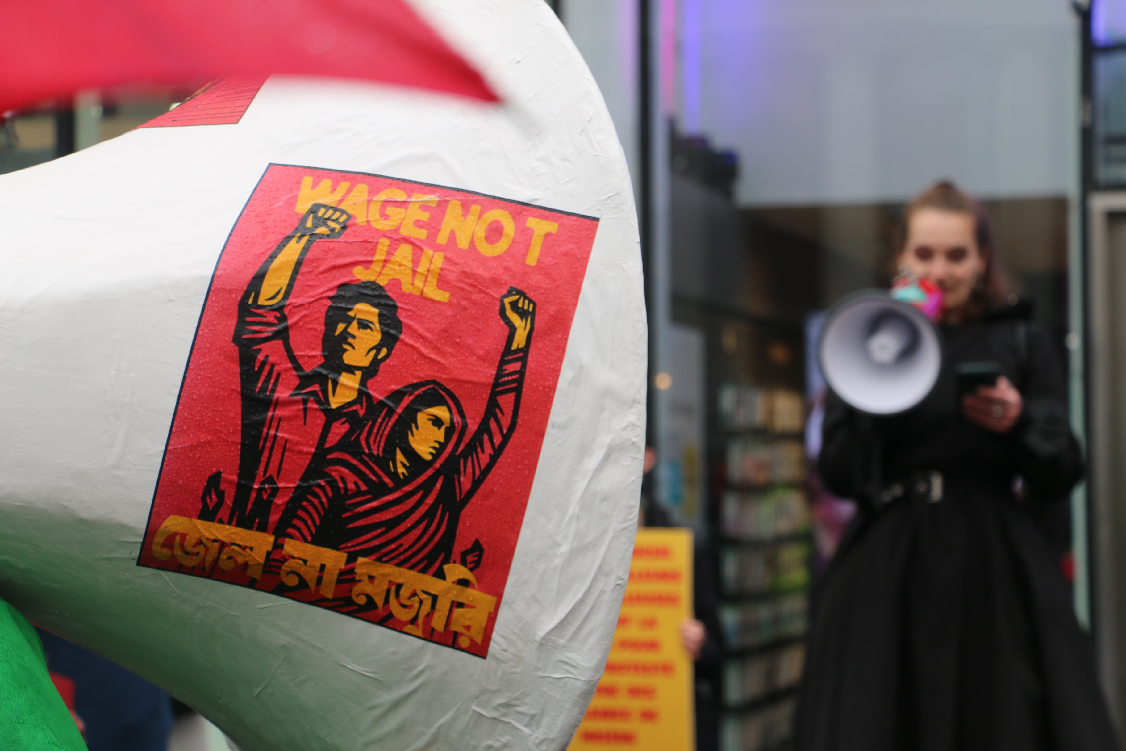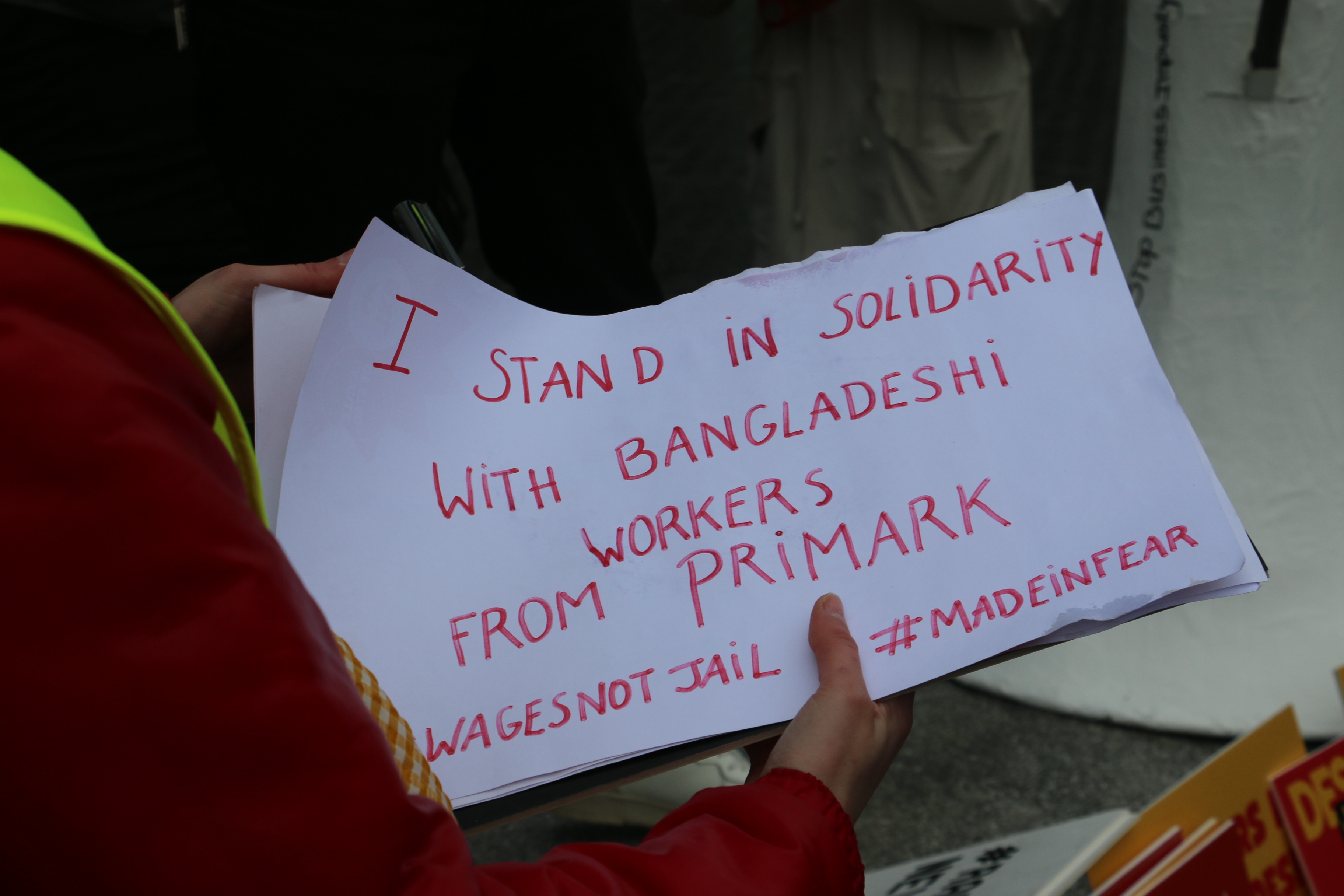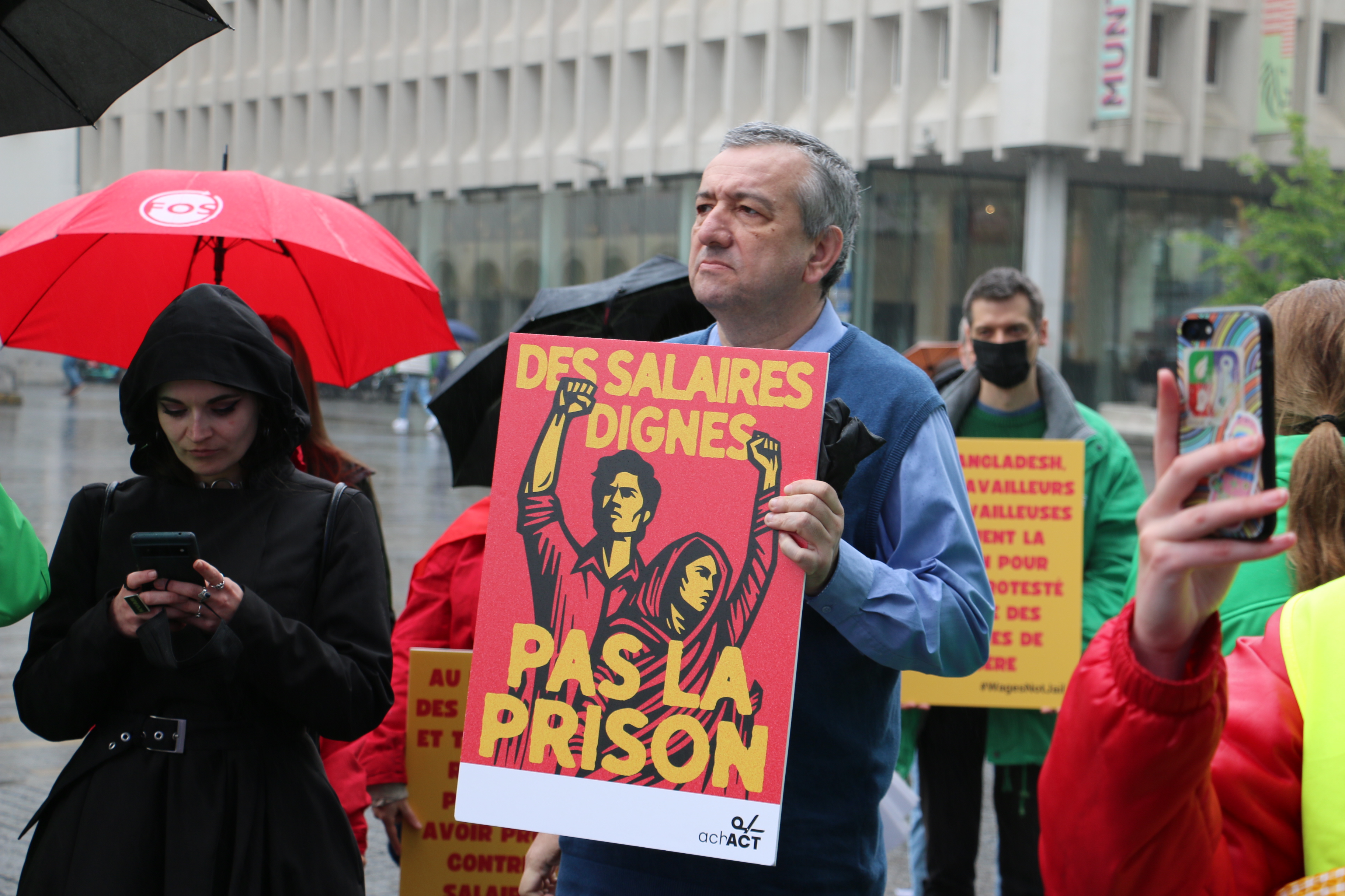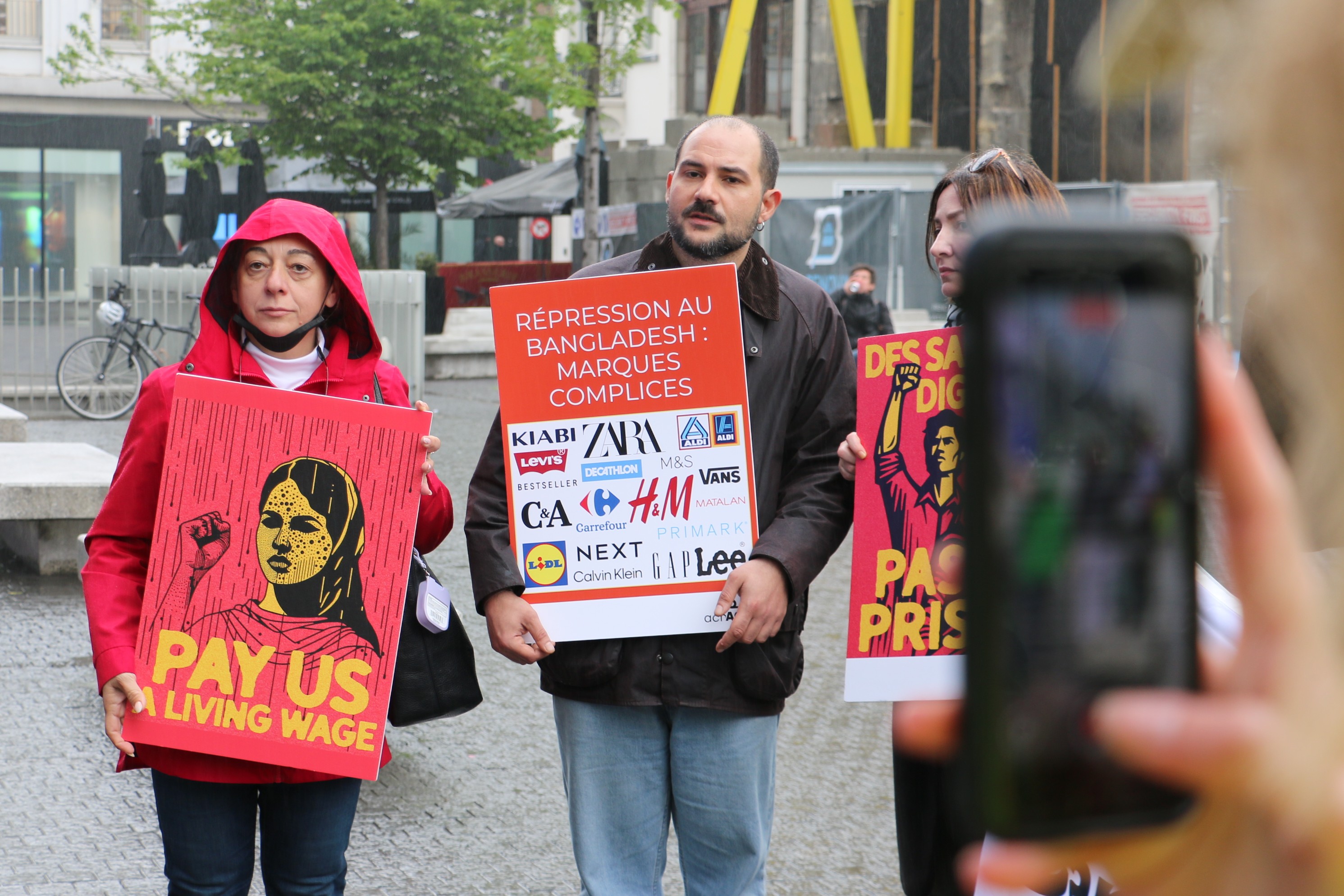 Slow motion betoging langs kledingwinkels in Brussel - 12 jaar na instorting kledingfabriek Rana Plaza