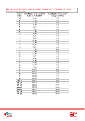 Tussenkomst van de werkgever in de vervoerskosten vanaf 01/02/2019 tot 31/01/2020 voor de bedienden (PC 200). Downloaden