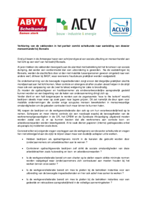 Verklaring van de vakbonden aan de werkgevers in de scheikunde over mensenhandel en illegale arbeid. Downloaden