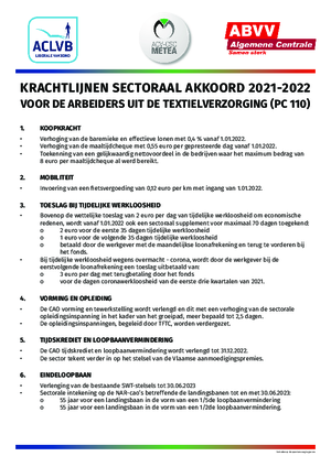 Krachtlijnen van het sectorakkoord 2021-2022 voor de arbeiders in de textielverzorging.