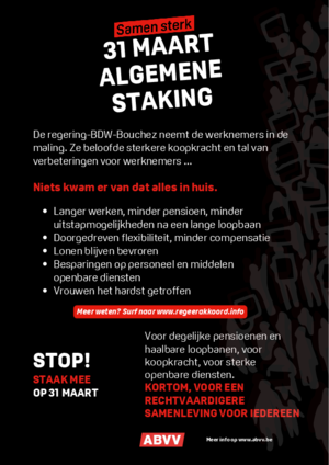 Waarom je best actie voert op 31 maart? Omdat de federale regering ons in de maling neemt. Hun belofte voor meer koopkracht en haalbare loopbanen is gebakken lucht! Downloaden