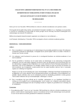 Overwegende dat het aanbeveling verdient, onverminderd de bestaande wettelijke of c.a.o.-bepalingen, in een procedure te voorzien tot voorlichting en overleg inzake de sociale gevolgen van de invoering van nieuwe technologieën in de ondernemingen met minstens 50 werknemers ;